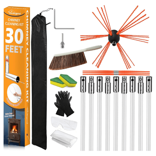 A good Chimney Sweep Kit is an important tool for anyone with a wood burning fireplace to have. This kit includes extensions for up to 30 feet, making it possible for you to clean the entire chimney.