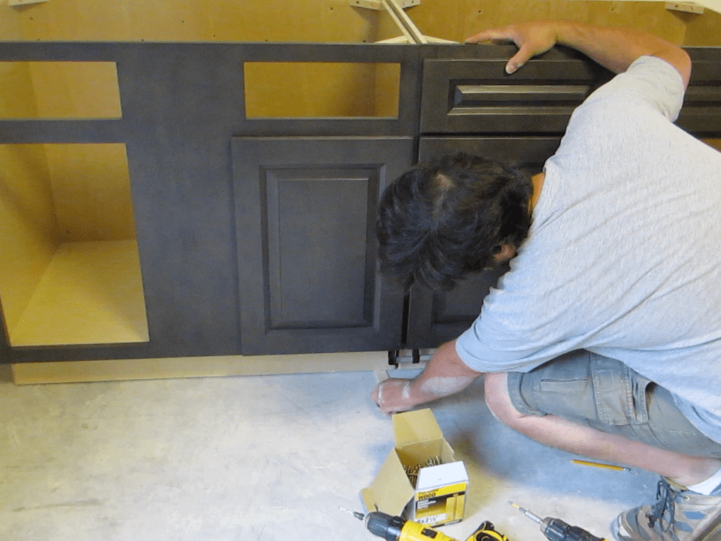 There are more than one way to successfully install kitchen cabinets. The method you are about to learn is my favorite because it allows you to install all the cabinets without needing the help of another person. It is a benefit if you have a helper, although you will see that is not required.