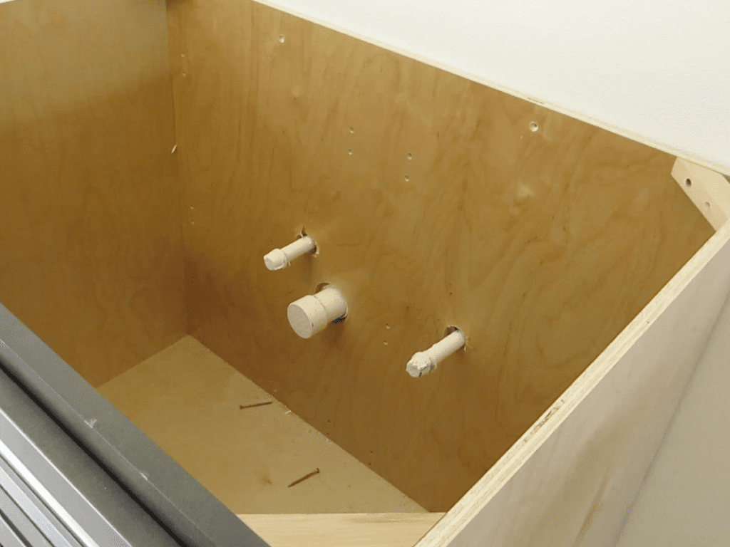 The box will need to be sturdy enough to hold the cabinet without wobbling. Your materials should be strong enough to hold about 20-40 pounds. I like to use plywood or other flat dimensional lumber for this. That’s because this material is easy to find, and cut to the right size.