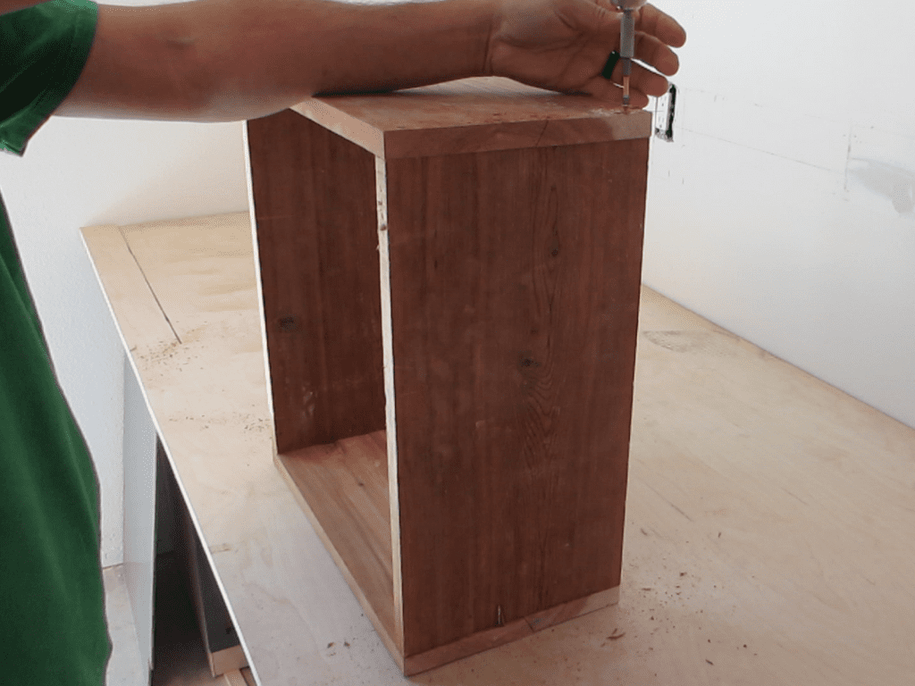 It’s especially helpful if you don’t have an extra set of hands to hold the cabinets. You just need to be careful getting the cabinets into place on top of the box.